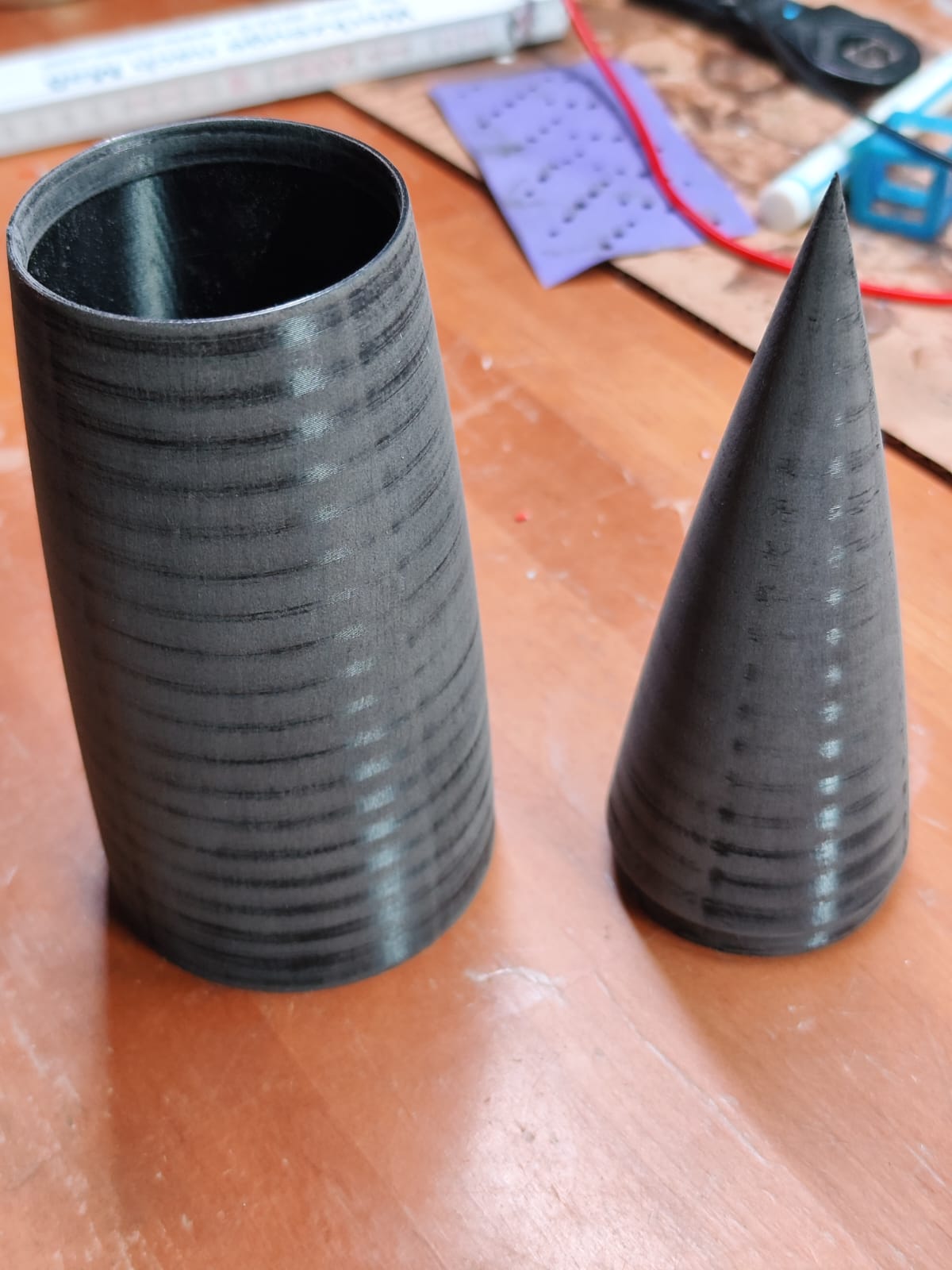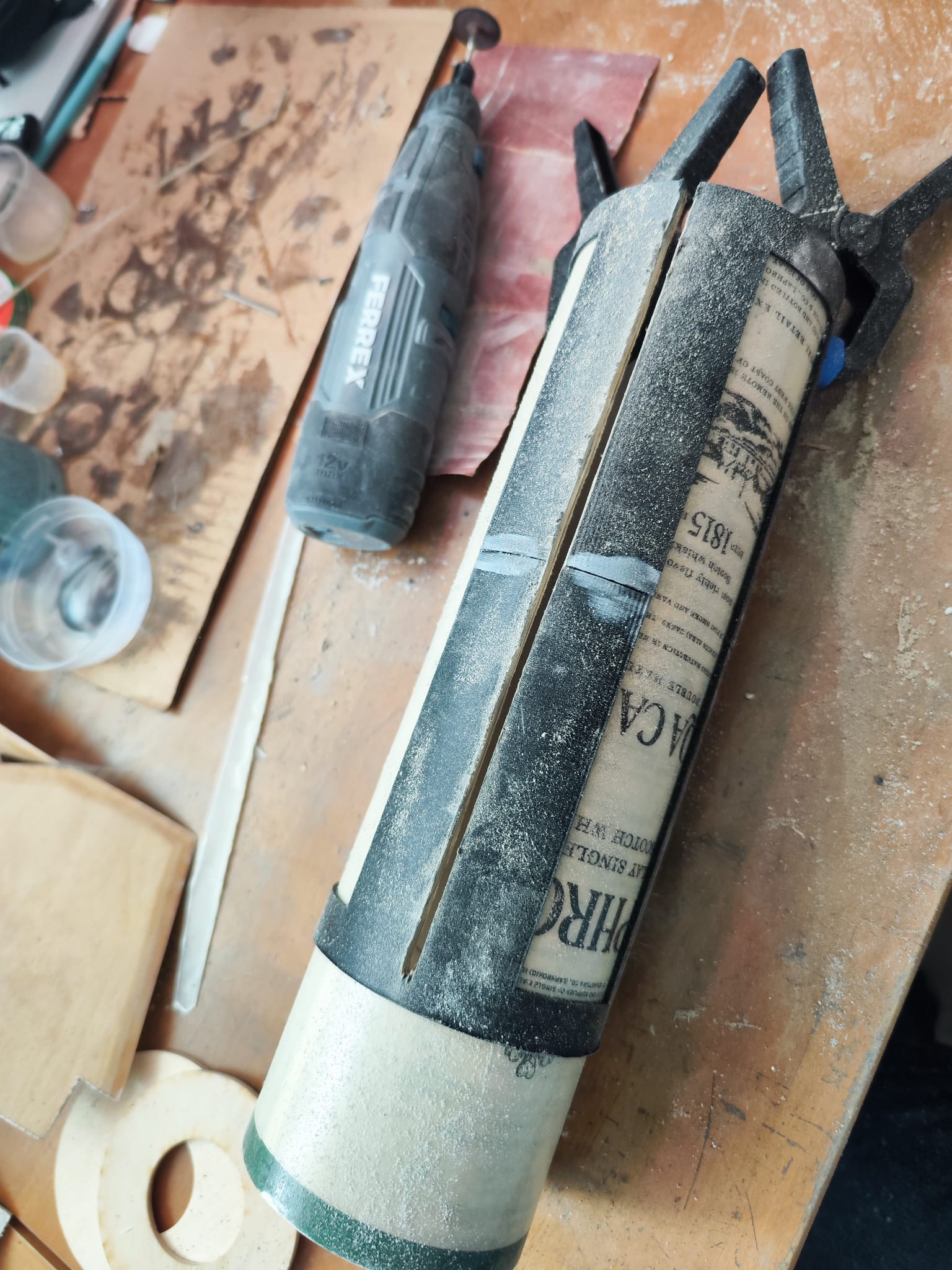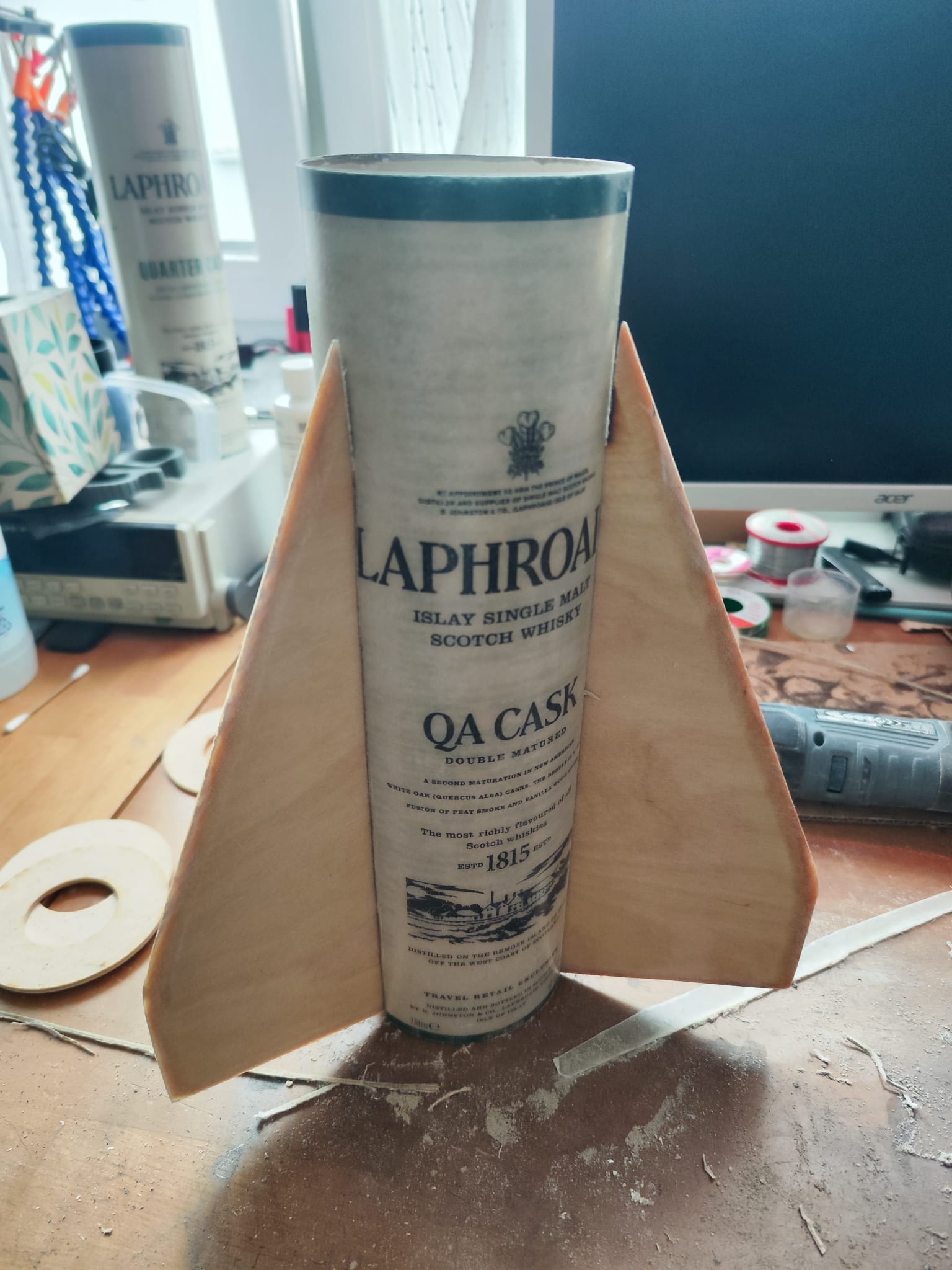 Mit großen Schritten geht es Richtung RJD, also müssen auch die Raketen langsam mal fertig werden (immer auf den letzten Drücker natürlich). Also, Körperrohre wurden inzwischen alle laminiert, geschliffen und lackiert:  Die Fins sind ausgeschnitten und geschliffen und heute bekam das Untereste Körperrohr seine Schlitze für die Montage. Dafür habe ich mir eine Vorrichtung 3D gedruckt (2-teilig, weil mein Drucker natürlich zu klein ist), mit Klammern geklemmt und los ging es mit dem fröhlichen dremeln! Die Finnen durften schon mal Probesitzen machen. Bisschen noch manuell schleifen, dann passt es perfekt! Die Tage geht's weiter!