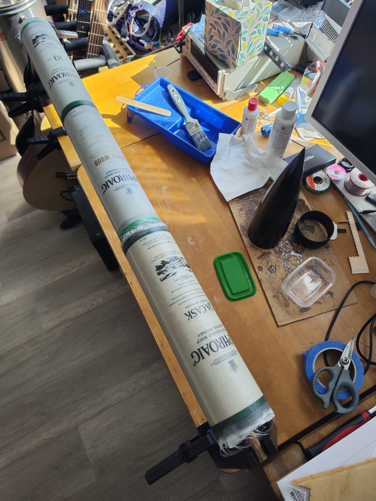 Hat zwar etwas gedauert, aber nach GFK+Epoxy, schleifen, Epoxy, schleifen, nass schleifen, Klarlack ist der erste Test-Tube fertig: Nach dem Nassschliff: Nach dem Klarlack: Gewicht hat sich von 70g nackte Röhre auf 125g inkl. Klarlack erhöht.