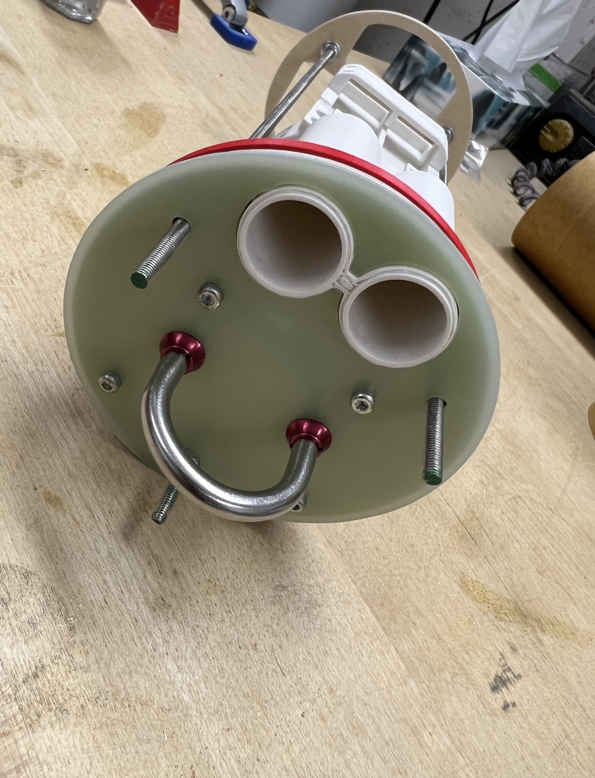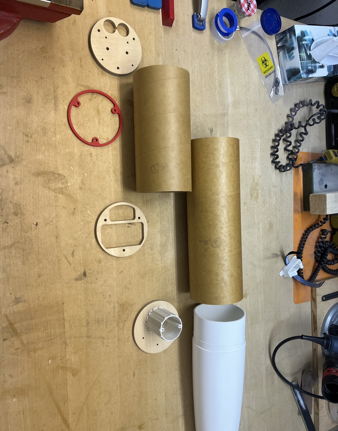 Löcher für die Nasen Aufnahme wurden gebohrt und damit die das ganze diesmal langfristiger hält wurden anstatt die Gewinde direkt zu schneiden Messing Schmelz Muttern eingesetzt … diese dann noch mit etwas Kleber auf der Innenseite verstärkt. Damit dieser bestmöglich hält wurde der Kunststoff vorher mit einem chemischen primer behandelt… Die Nosbay Aufnahmen sowie Abstandsleisten wurden eingeklebt … Danach wurde der Coupler samt Zwischenspant eingesetzt … Damit das ganze auch schön gerade durchtrocknet wurde alles zusammen ausgerichtet und fixiert … Viele Grüße Marco |