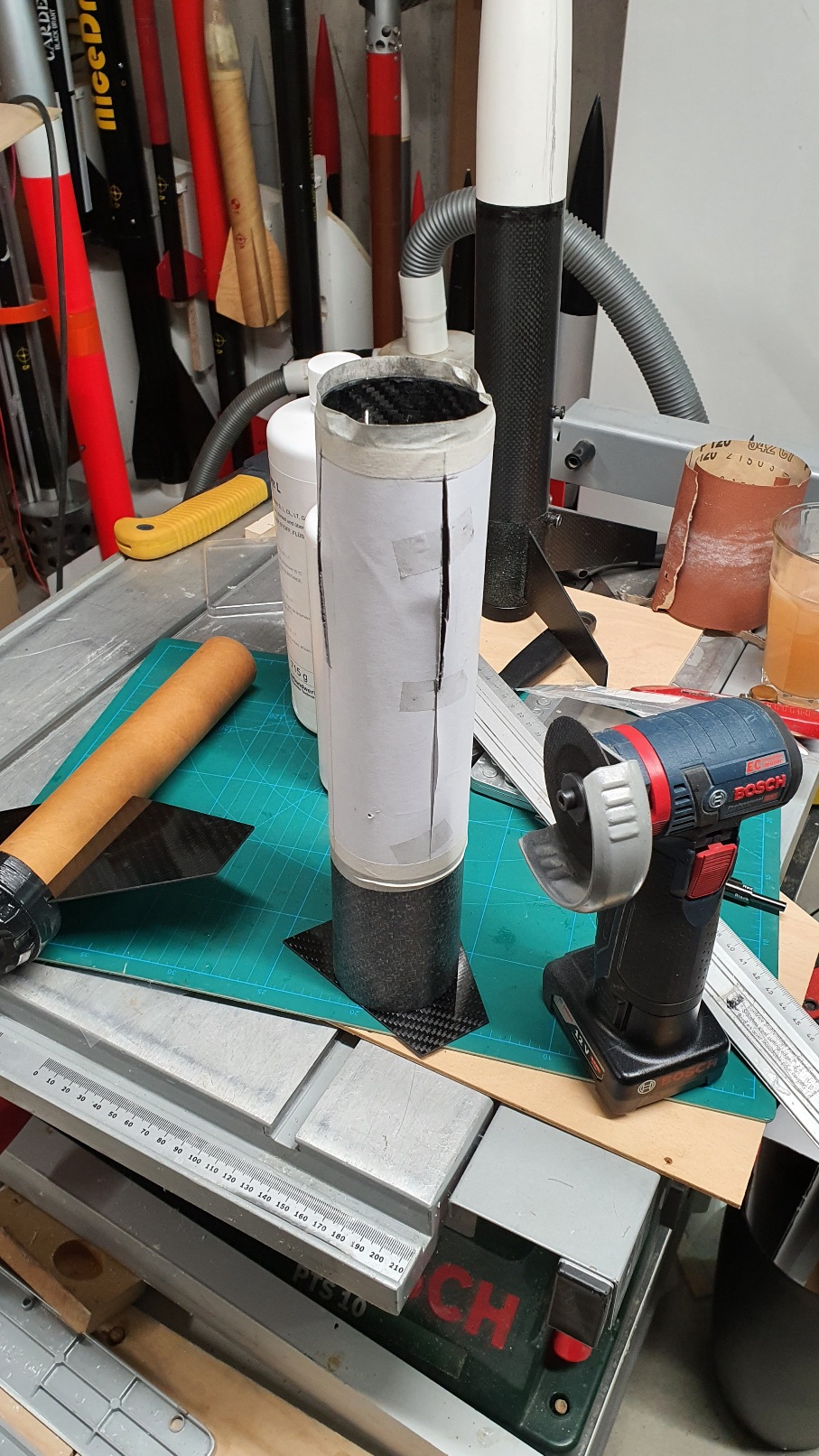 Hier geht's weiter Die Flossen habe ich klassisch auf einem Papierbogen aufgeteilt und mit meiner mini Flex eingesägt