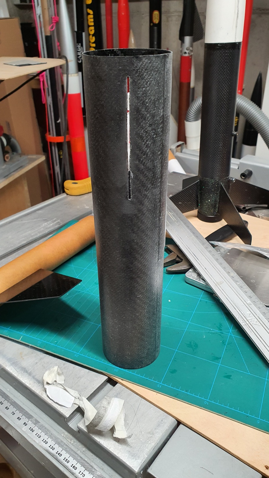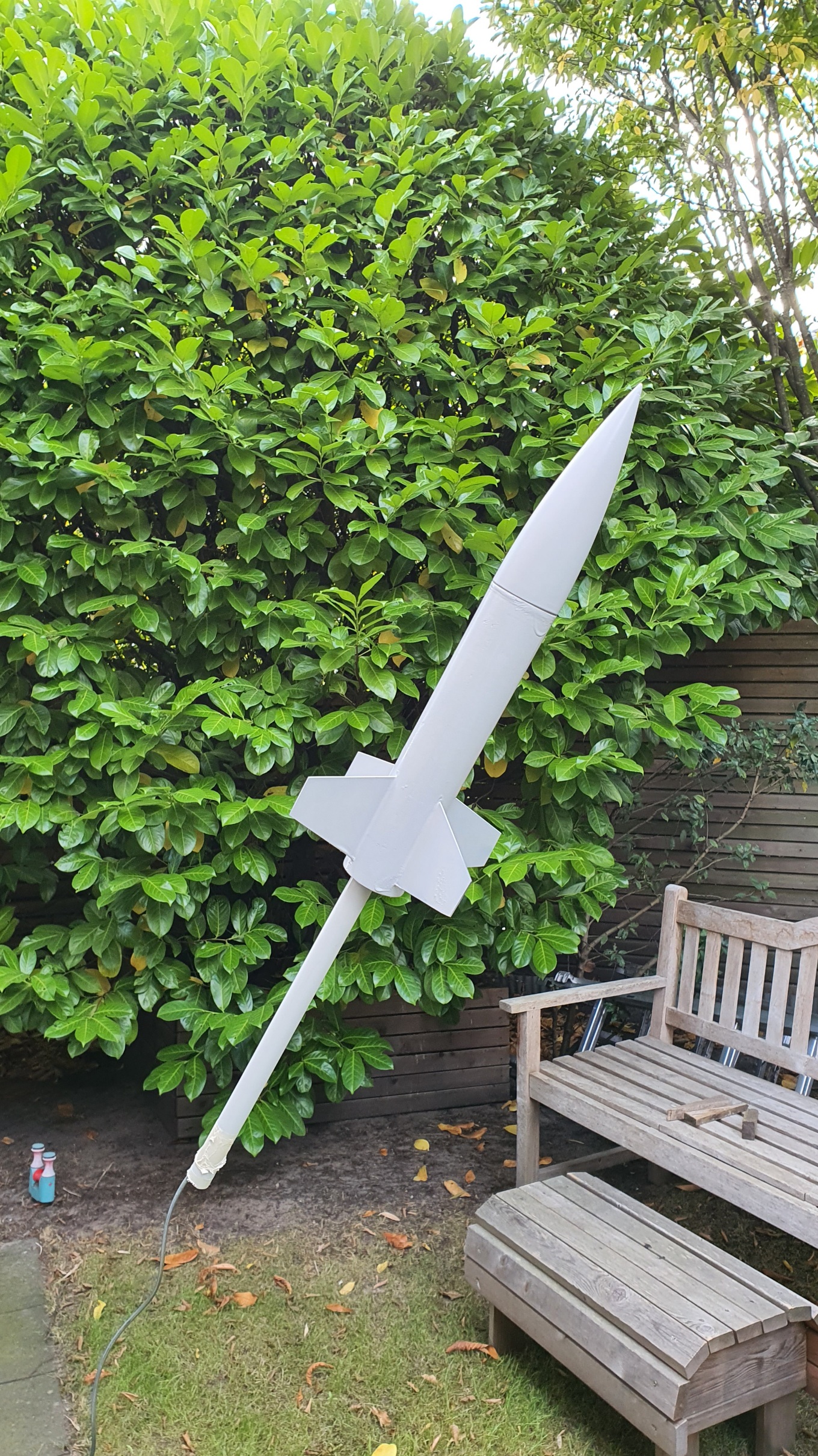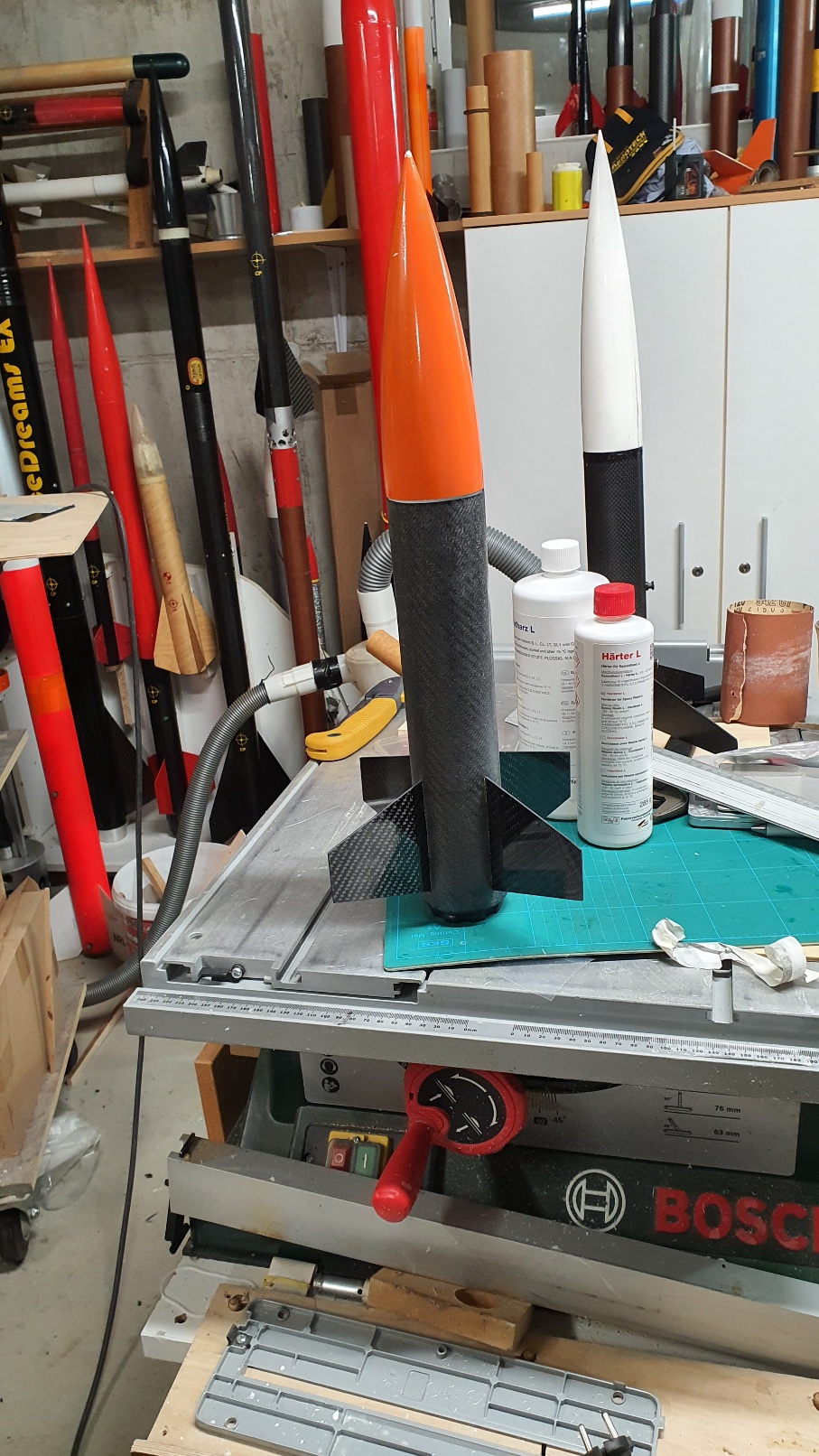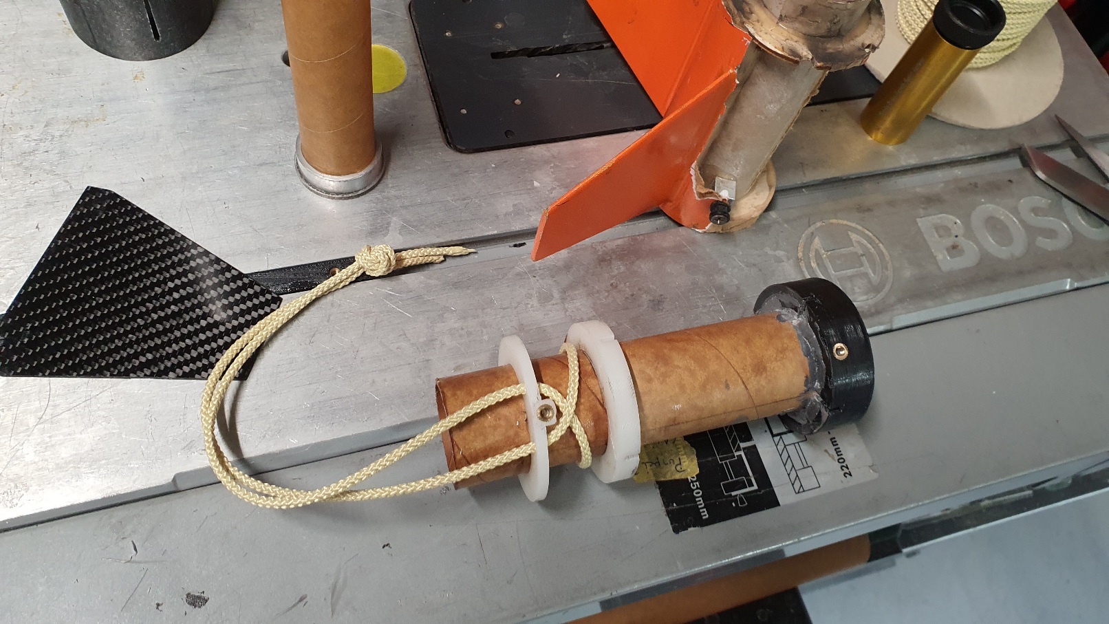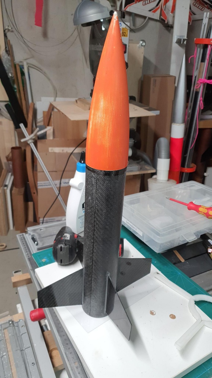 So ist die Shockcord befestigt. Fertig verklebt und grundiert